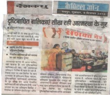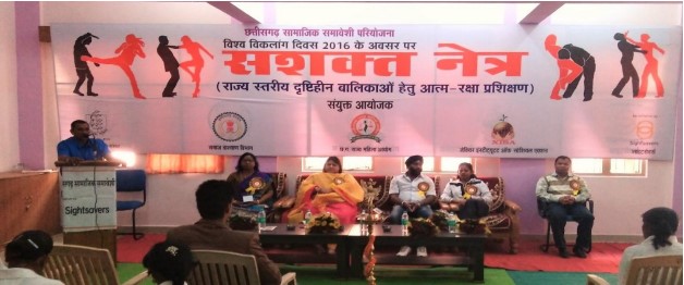 Inaugurating the training programme, Mrs. Harsita Pandey, President of commissioner of women, Chhattisgarhi said that, this type of laudable initiative was held first time in Chhattisgarh. Especially to those who are mostly vulnerable in society as being visually impaired.She also emphasised and“assured the participated girls to feel safety through empower through self-defence with moral and physic “She further said “The state Govt. going to take the initiative to safeguard all the women in the state and Government always support to the