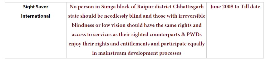 Considering above situation, and based on learning’s from the first CBR project partner [Grihini] has implemented various programmes in Simga block of Raipur district . The project proposes to strengthen the system involving government and other stakeholders for ensuring effective social inclusion of all PWDs in the project area. The project focusses on improving the participation of the PWDs in development programmes. The project strengthens capacities of PWDs for self-advocacy and helps them in improving their participation in mainstream Development processes.To achieve the goals various programs like Base line survey, Outreach diagnostic camps for surgeries, school screening & spectacles provide rehabilitation services, Resources mobiles awareness programme ,community meetings ,Primary health care training & orientation (AWW,ANM, school teacher, PRI members, volunteers, SHG, parents , Project staff ) One Vision centre is established, clinical & functional assessment is done, children are enrolled in regular schools & are provided with education materials. Celebration of events like Disability day, World Sight Day, IEC material, Training in daily living skill & Income generation for blind & low vision are conducted.