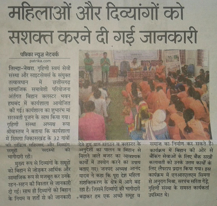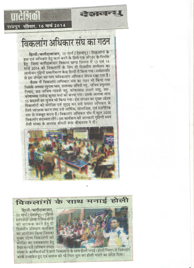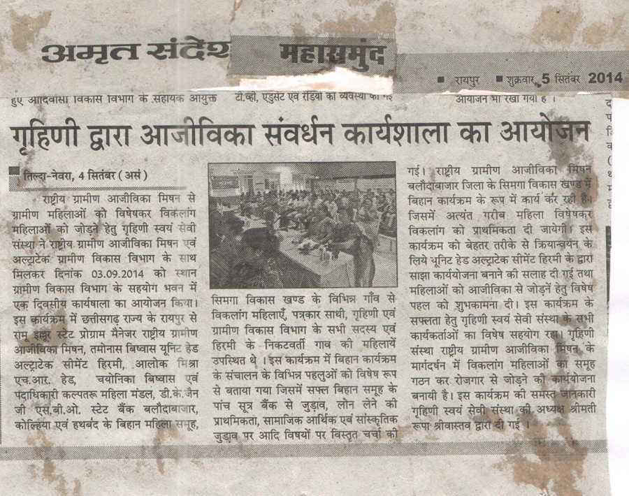 Grihini is a social working organization devoted to over all development and empowerment of women. It was established on 15th May1996 and registered under the society act on 26 June1997.